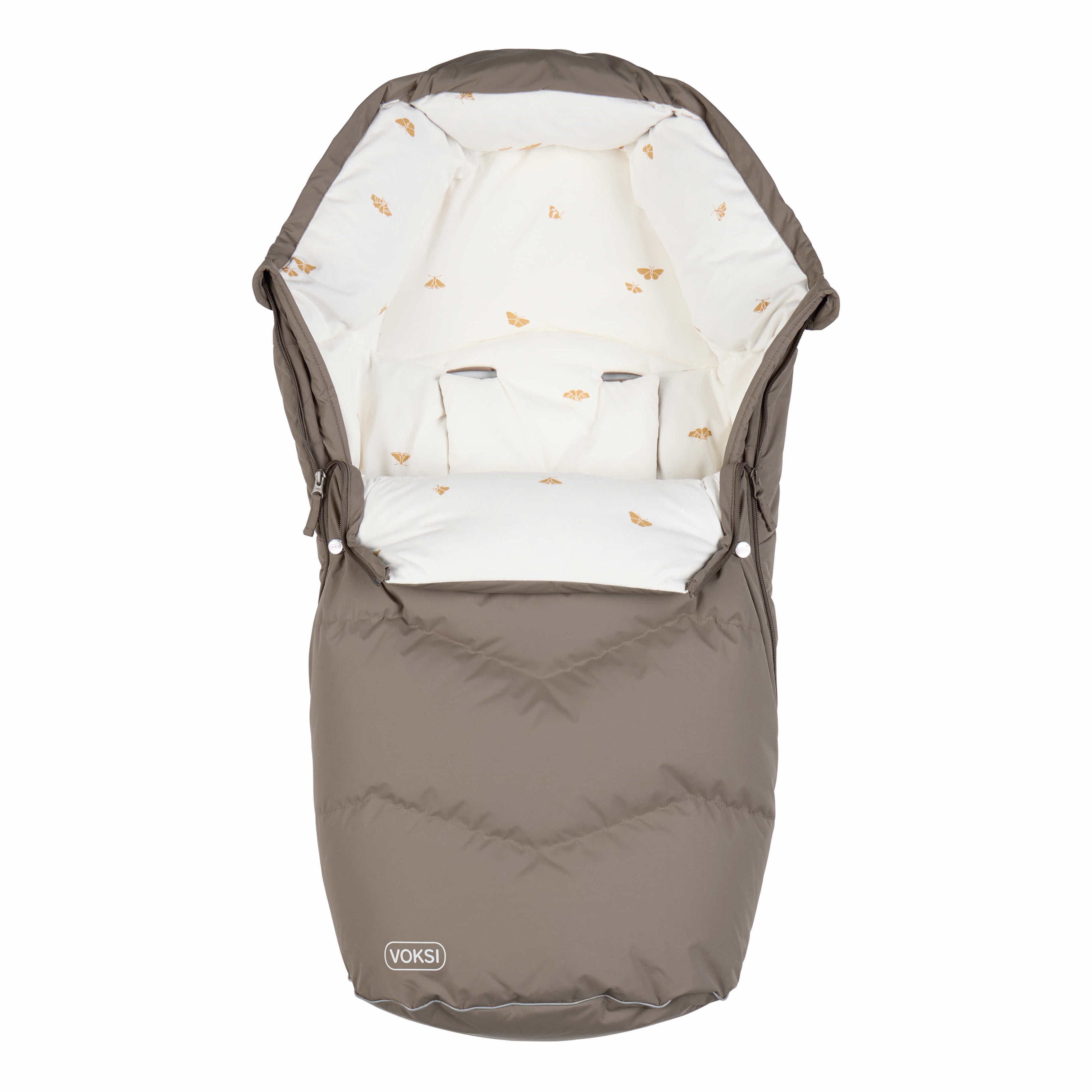 Det er luften mellem dunfibrene som giver maksimal isolering og holder barnet varmt igennem efteråret og vinteren. Tekstilet på indersiden er fremstillet af blød bomuld, som gør det blødt og behageligt for barnet at ligge på. Yderstoffet er vindtæt og har en vandsøjle på 8000 og er behandlet med BIONIC-FINISH®ECO som betyder at den er vandafvisende. Når det regner meget anbefaler vi at bruge et regnslag på ydersiden. Alle materialerne i Voksi Urban er OEKO-TEX®standard 100, klasse 1 certificeret, som er et kvalitetsmærke, der sikrer, at ingen af materialerne i produktet indeholder skadelige kemikalier. Den unikke udformning af rygåbningen gør, at køreposen nemt kan monteres og bruges i vogne med forskellige seler.