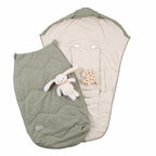 A light, soft sleeping bag that is suitable from newborn to 3 years and is also ideal for use in car seats. The spring and summer bag is designed with a number of details that allow it to be adjusted to the child’s needs.