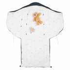 Voksi® Carry North is easy to use with a practical carry cot function included in the sleeping bag. The Voksi® bag can be folded together in different ways to provide a natural extension as the child grows. The unique swaddle function ensures that your baby is lying safely and comfortably. A cord around the head area can be adjusted to suit your child’s needs and preferences in different weather conditions. The sleeping bag can be used as a play mat when unfolded. Carrying straps allow you to carry the child with ease while it sleeps. The removable carry board can be used up to 9kg.