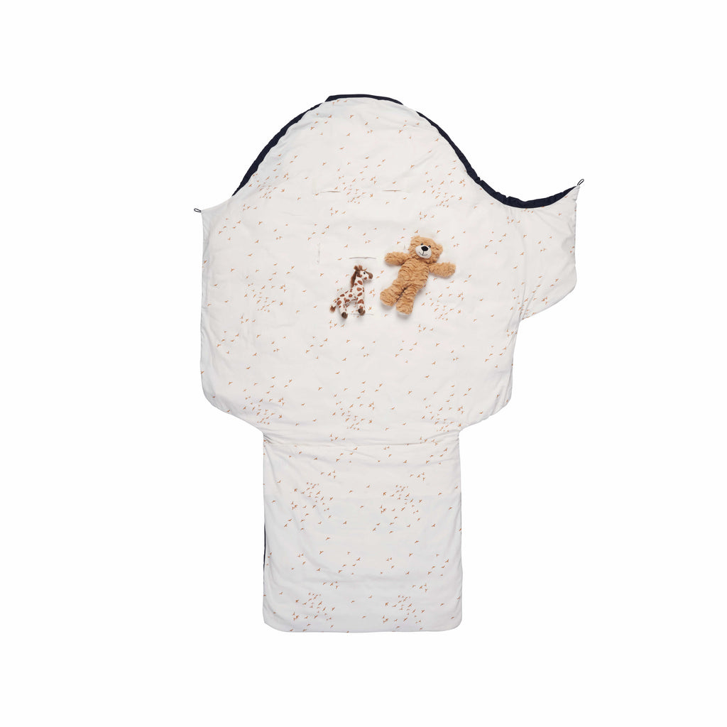 The sleeping bag is an autumn and winter bag and is our original classic with a flexible duvet that can be extended as your child grows. The sleeping bag consists of natural and quality-assured materials such as wool and cotton. The sleeping bag consists of 100% cotton cover and a warm wool duvet. The wool duvet keeps your baby dry and at a comfortable temperature by leading moisture away from the baby’s body.