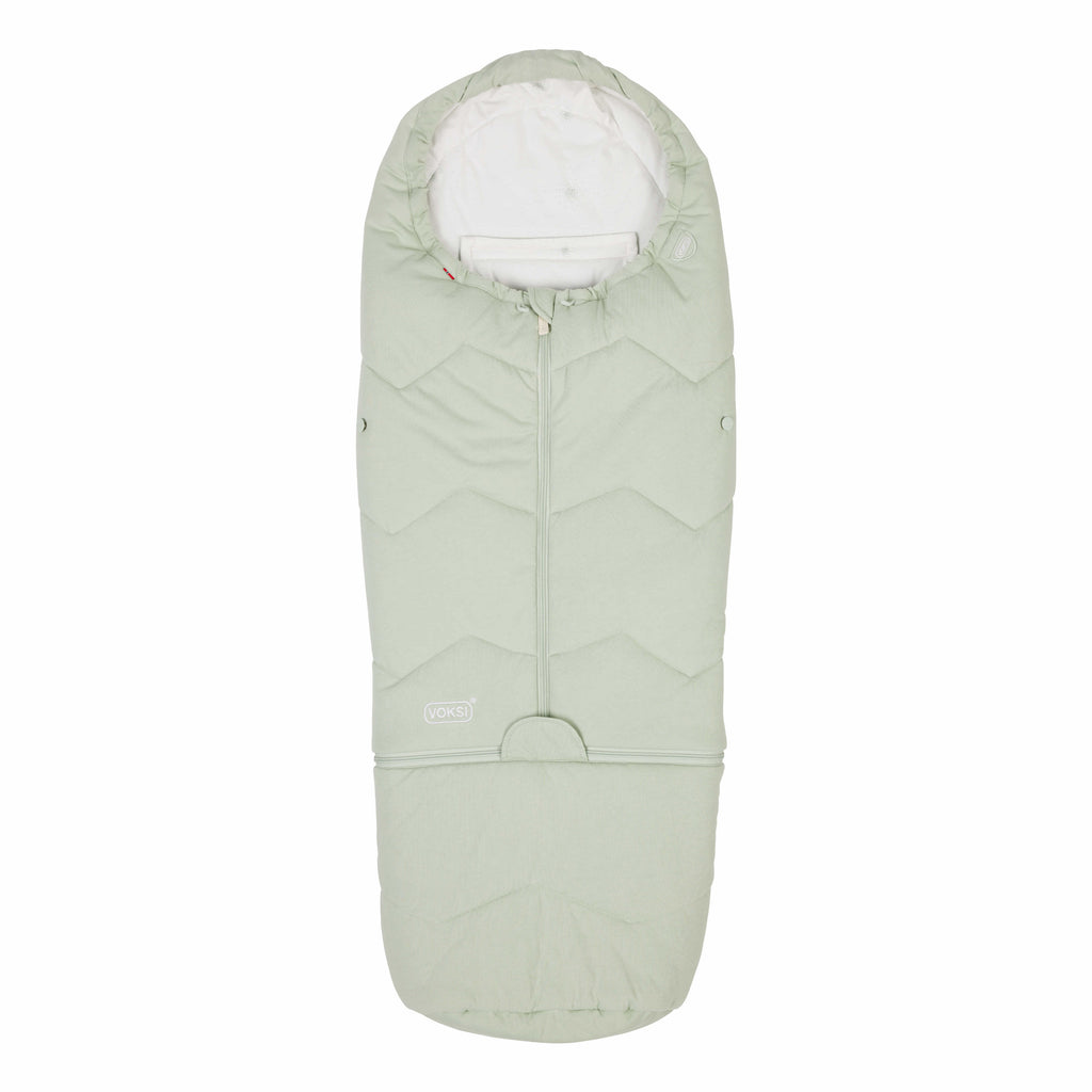 A cord around the head area can be adjusted to suit your child’s needs and preferences in different weather conditions. A zip fastener at the bottom also provides ventilation and access to check on the child's foot temperature while sleeping, or simply for ventilation on warmer days. An extension piece is included and can easily be fitted to the sleeping bag once the child has grown and needs more space. In addition, you can unfold the bag and use it as a play mat. Anti-slide material in the back means that the bag stays in place in the pram. The unique design of the backrest openings allows this bag to be easily fitted and used in prams and car seats with different harnesses. When used with a car seat, Voksi® Sky Light provides the insulation that replaces slightly thicker outerwear. In this way, the harness in the car seat can sit closer to the baby’s body. Voksi® Sky Light has been crash tested in combination with BeSafe car seats in the recommended rearward facing position.