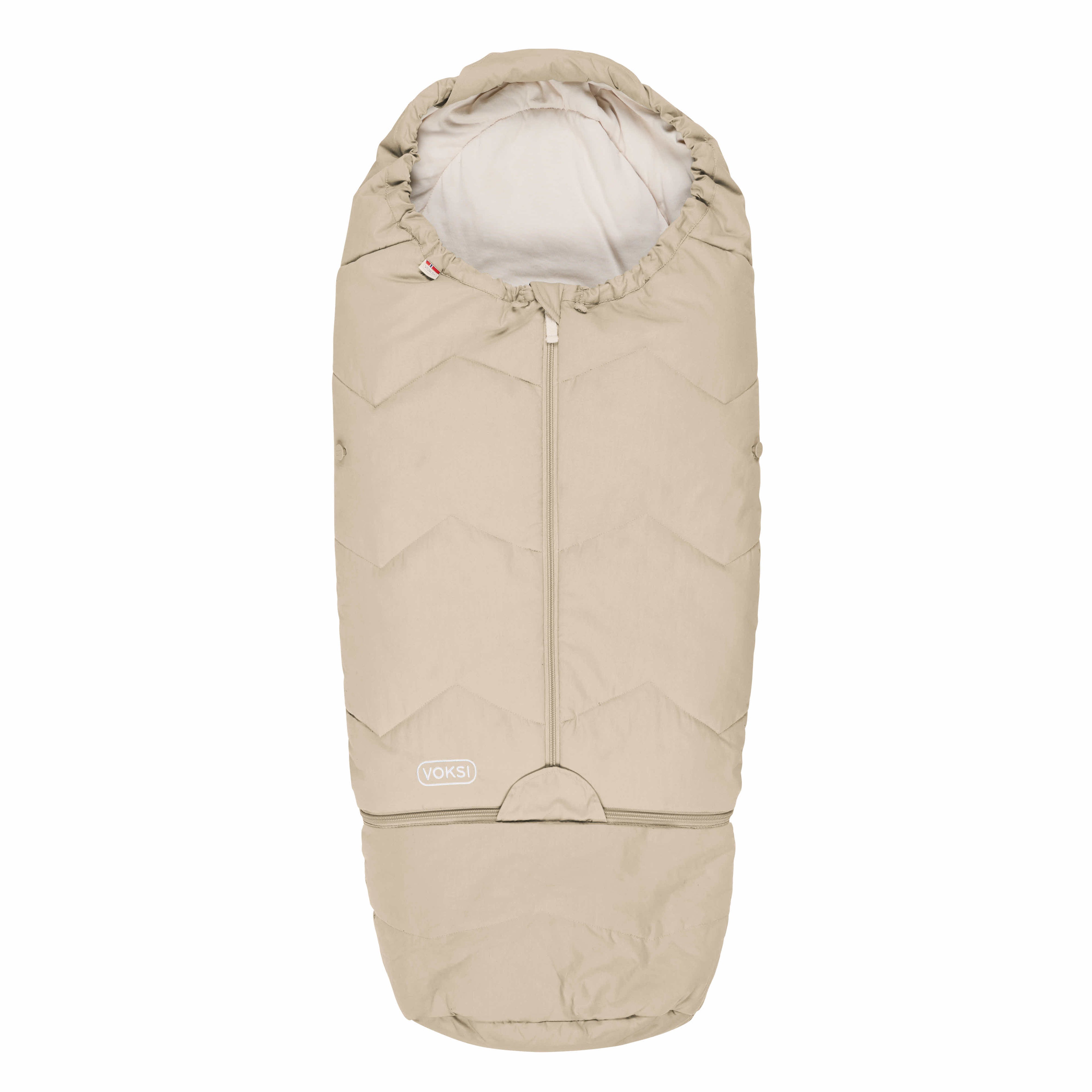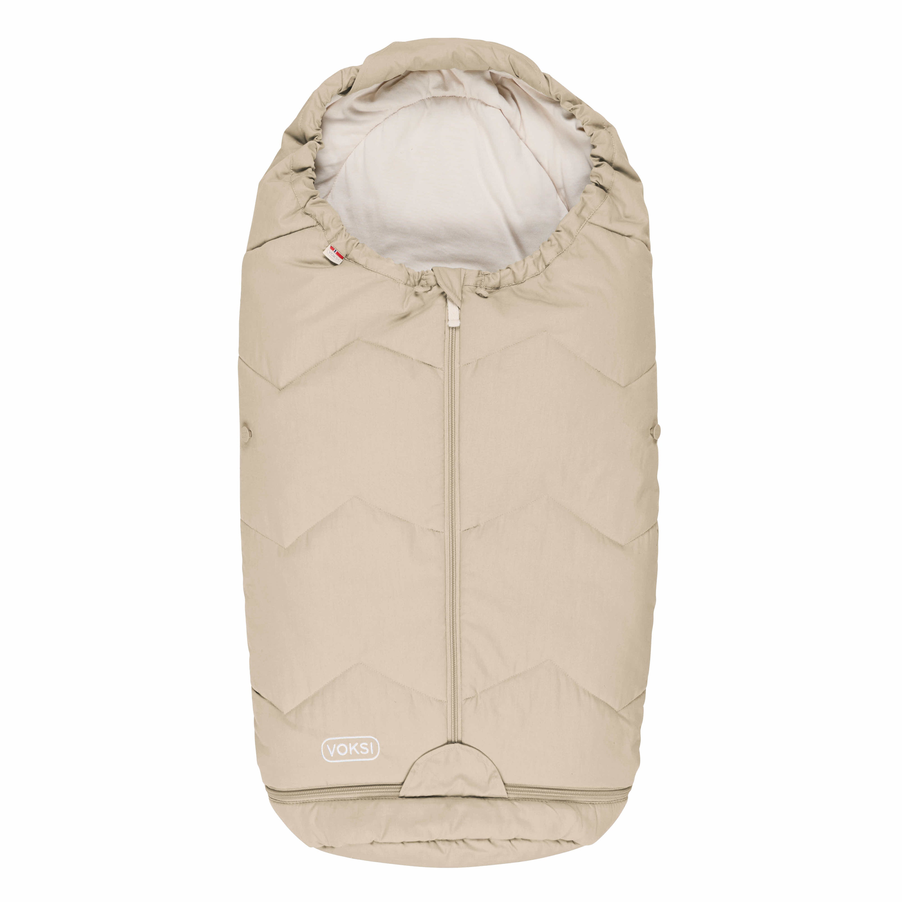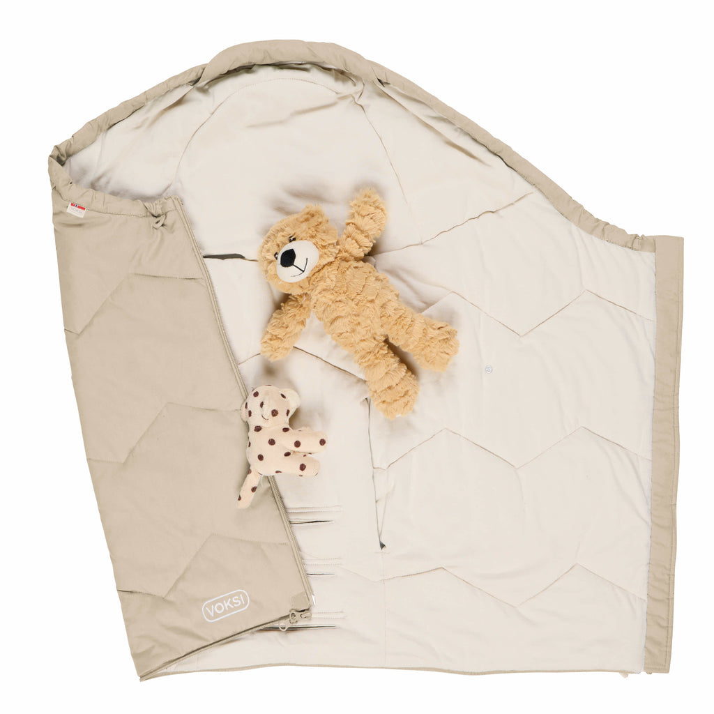 Vognposen er laget av myke og naturlige materialer for å gi best mulig komfort for babyen. Voksi Sky Light har et fyll av resirkulert polyester og yttertekstil i økologisk bomull som er dekket av BIONIC FINISH, som gjør produktet vind- og vannavisende. Innertekstil er laget av bomullsjersey som gjør det behagelig og mykt for barnet å ligge i vognposen (Terracotta, Golden Yellow og Dusty Green har ikke BIONIC FINISH). Alle materialene i Voksi Sky Light er OEKO-TEX®standard 100, klasse 1 sertifisert, som er et kvalitetsmerke som tilsier at ingen av materialene i produktet inneholder skadelige kjemikalier.